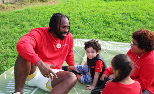 Last June, New England Patriot Matt Judon spent an evening at Gather Farm in Johnston with several of our families where they got their hands dirty planting vegetables, took a guided nature walk where they learned about local plants—and most importantly, got expert advice on how to throw a football!