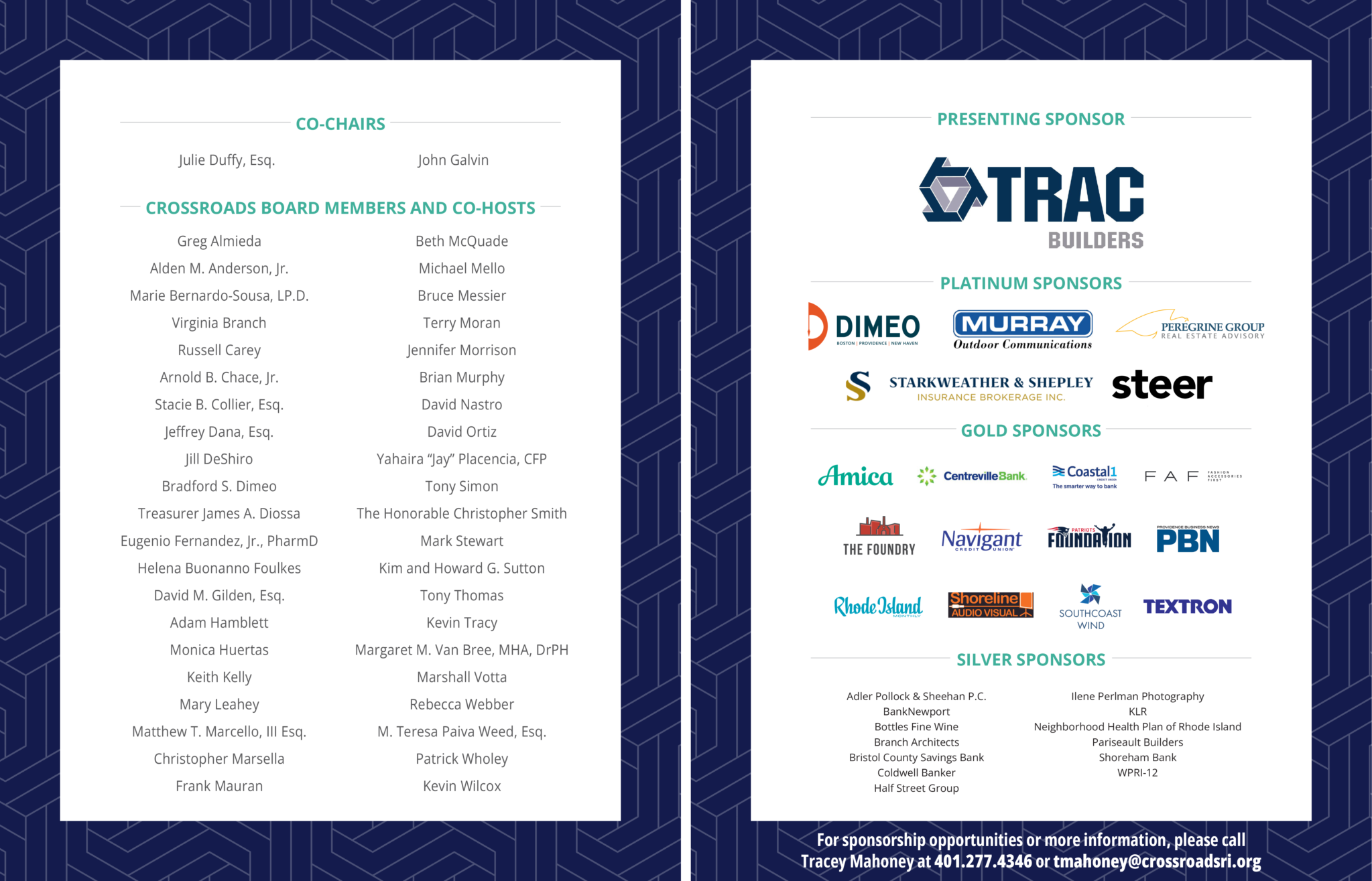 Thank you to our generous supporters, board members, co-chairs, co-hosts and sponsors for supporting Crossroads' Neighbors Helping Neighbors fundraising event at Farm Fresh Rhode Island!