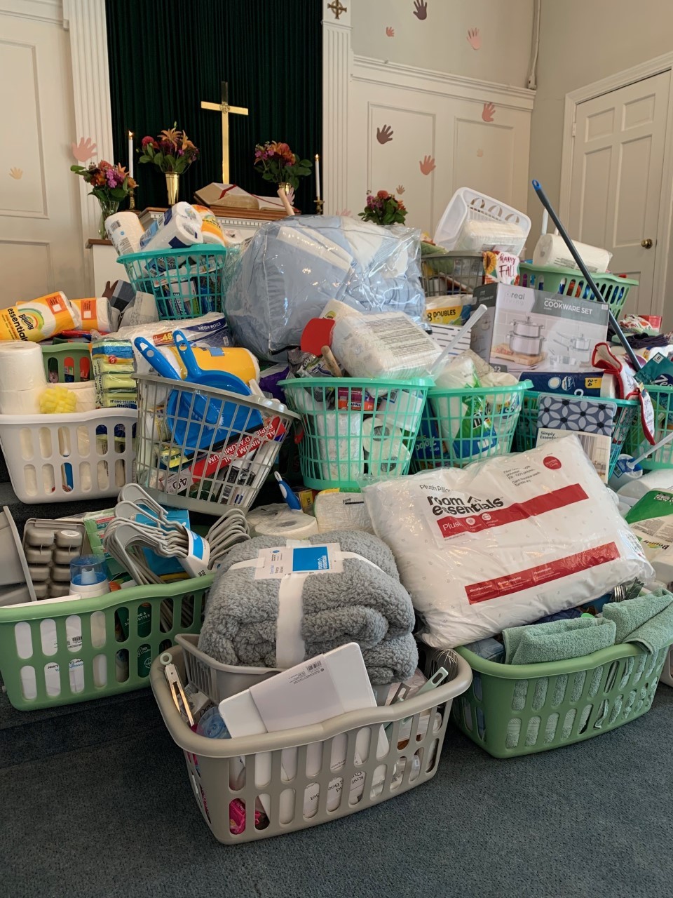 Rev. Ray: We adopted an outreach project of “Welcome Home Baskets.” Our church ministers provided empty laundry baskets to the congregation along with a list of household essential ideas such as paper products, cleaning supplies, linens, dishes and shower curtains. Our congregation was encouraged to create their own baskets and return them to church over several weeks. The congregation’s baskets became part of our offering and blessing each week. We invited Crossroads to join us as a Guest Speaker at a Sunday worship service and presented our Welcome Home Baskets to our guest. The congregation made a delivery parade to bring the baskets to Crossroads with lots of cars and volunteers to deliver. We provided over 45 Welcome Home Baskets this fall.