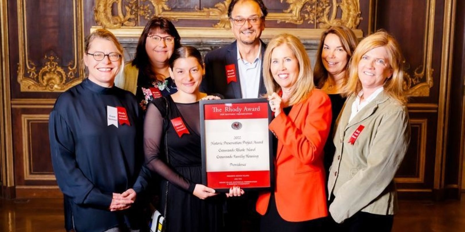 PROVIDENCE, RI - Crossroads Rhode Island was recognized at Preserve Rhode Island’s annual Rhody Awards at Ochre Court in Newport this month. Crossroads was honored for its Crossroads Family Housing project – a multi-property project in Providence which provides permanent housing for 30 families that previously experienced homelessness.